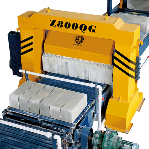 泡沫混凝土砌塊切割機是發(fā)泡混凝土砌塊生產(chǎn)線最重要的設備之一。脫模好的坯體通過切割輸送機送到切割機生產(chǎn)線進行成品切割。切割時將整塊毛坯(2.88立方)分割成三塊適合成品流水線切割機的切割尺寸。然后毛坯翻轉(zhuǎn)吊具將分塊切割好的坯體進行橫向旋轉(zhuǎn),吊運到成品切割區(qū)進行成品切割。